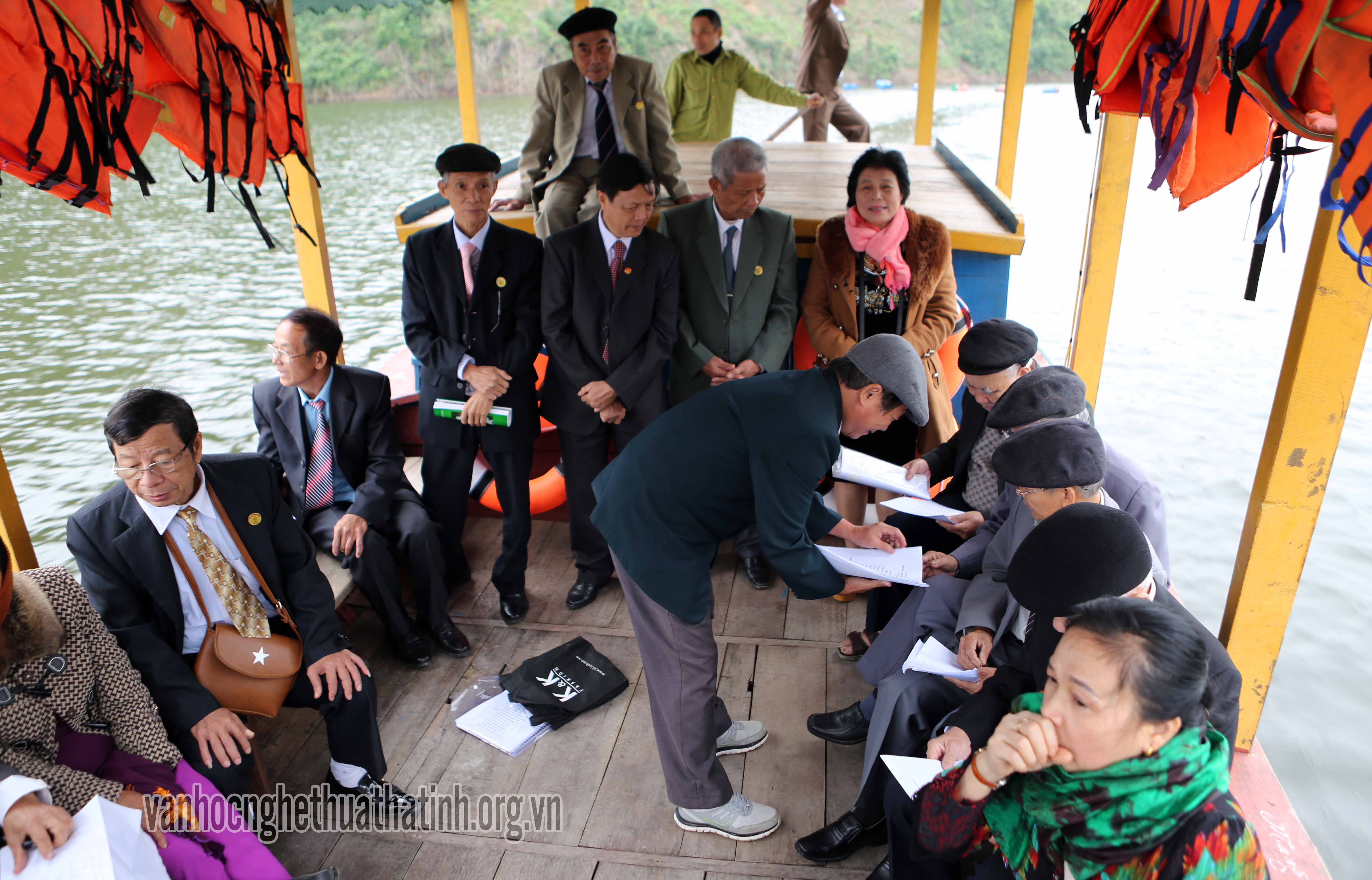 Trước khi tiến hành buổi giao lưu thơ, lãnh đạo Vườn Quôc gia Vũ Quang đã tổ chức phương tiện thuyền máy và hướng dẫn các đại biểu, thành viên hai câu lạc bộ tham quan một số phong cảnh trong lòng hồ thủy điện Ngàn Trươi – Cẩm Trang.