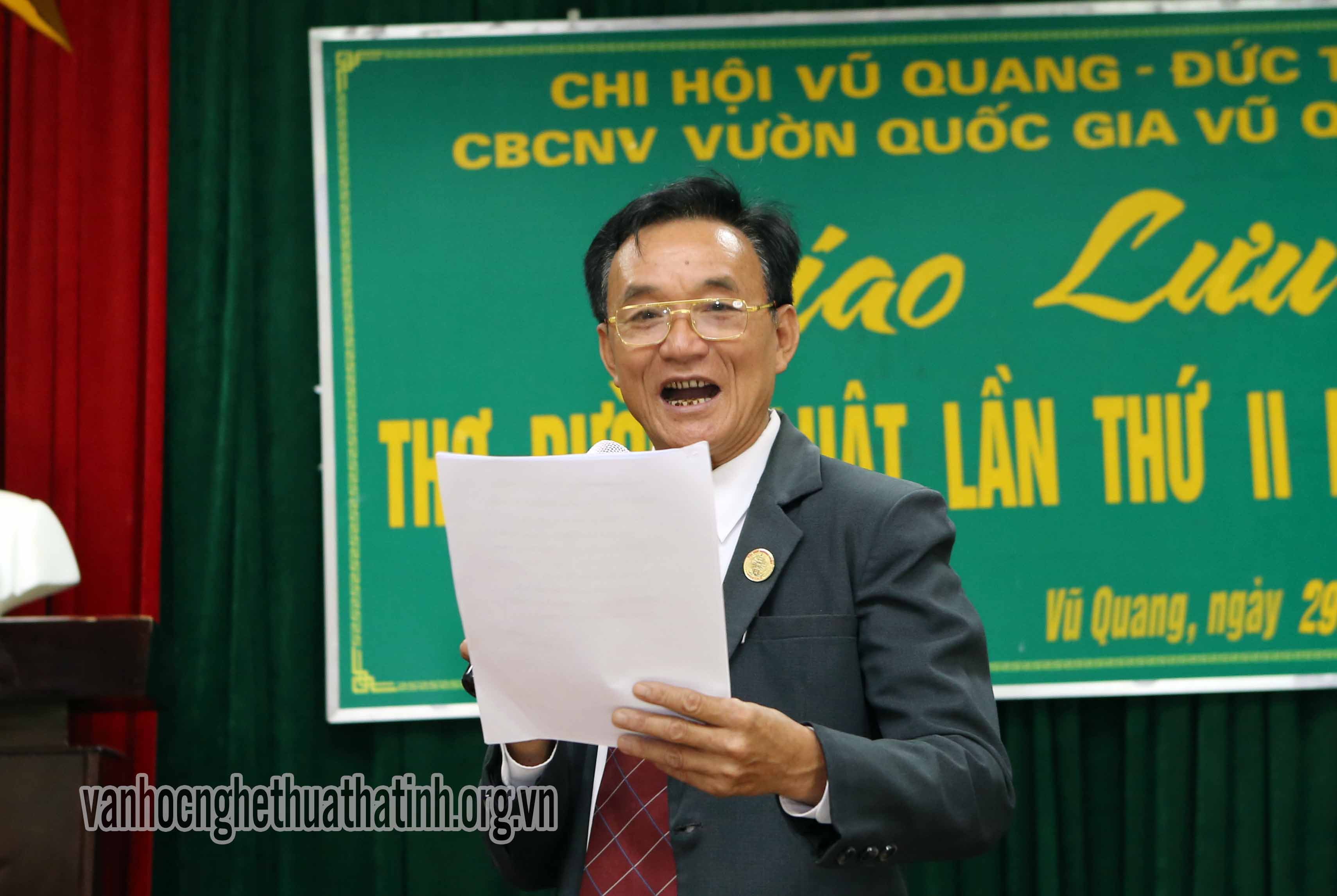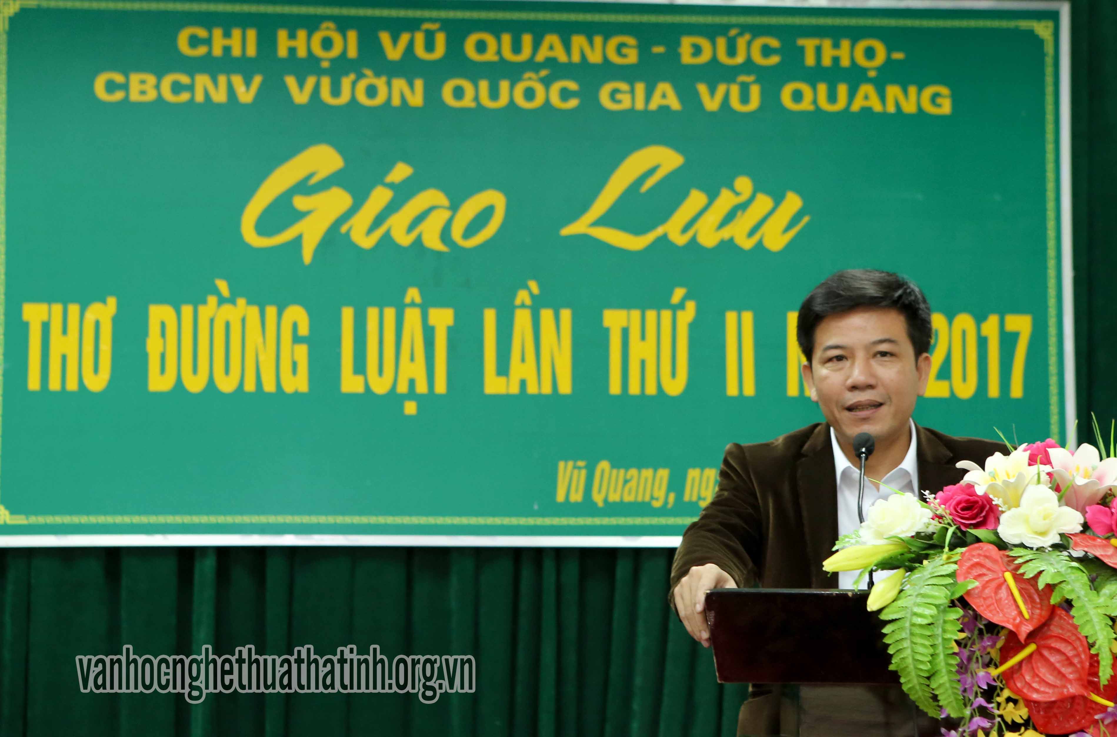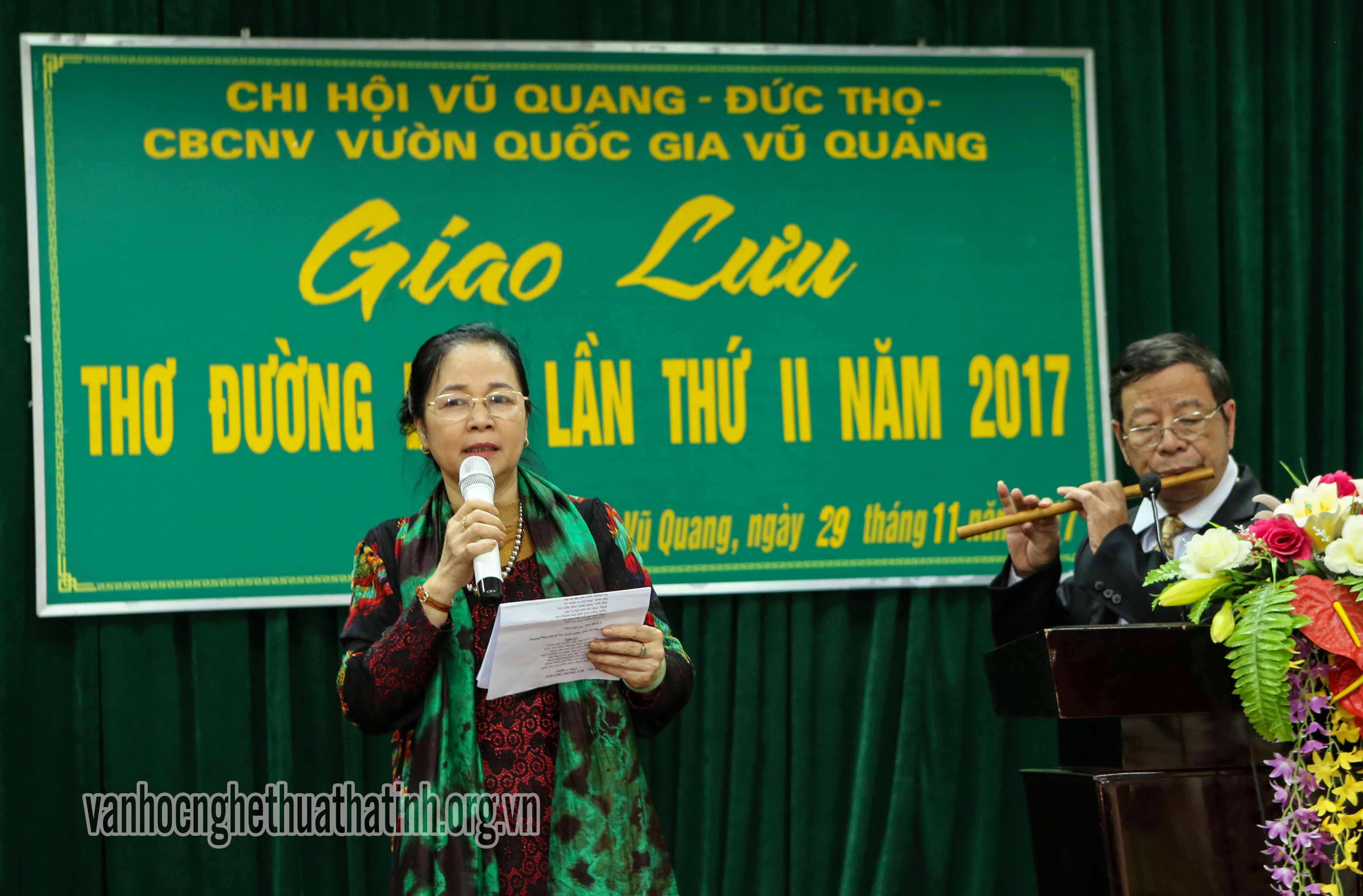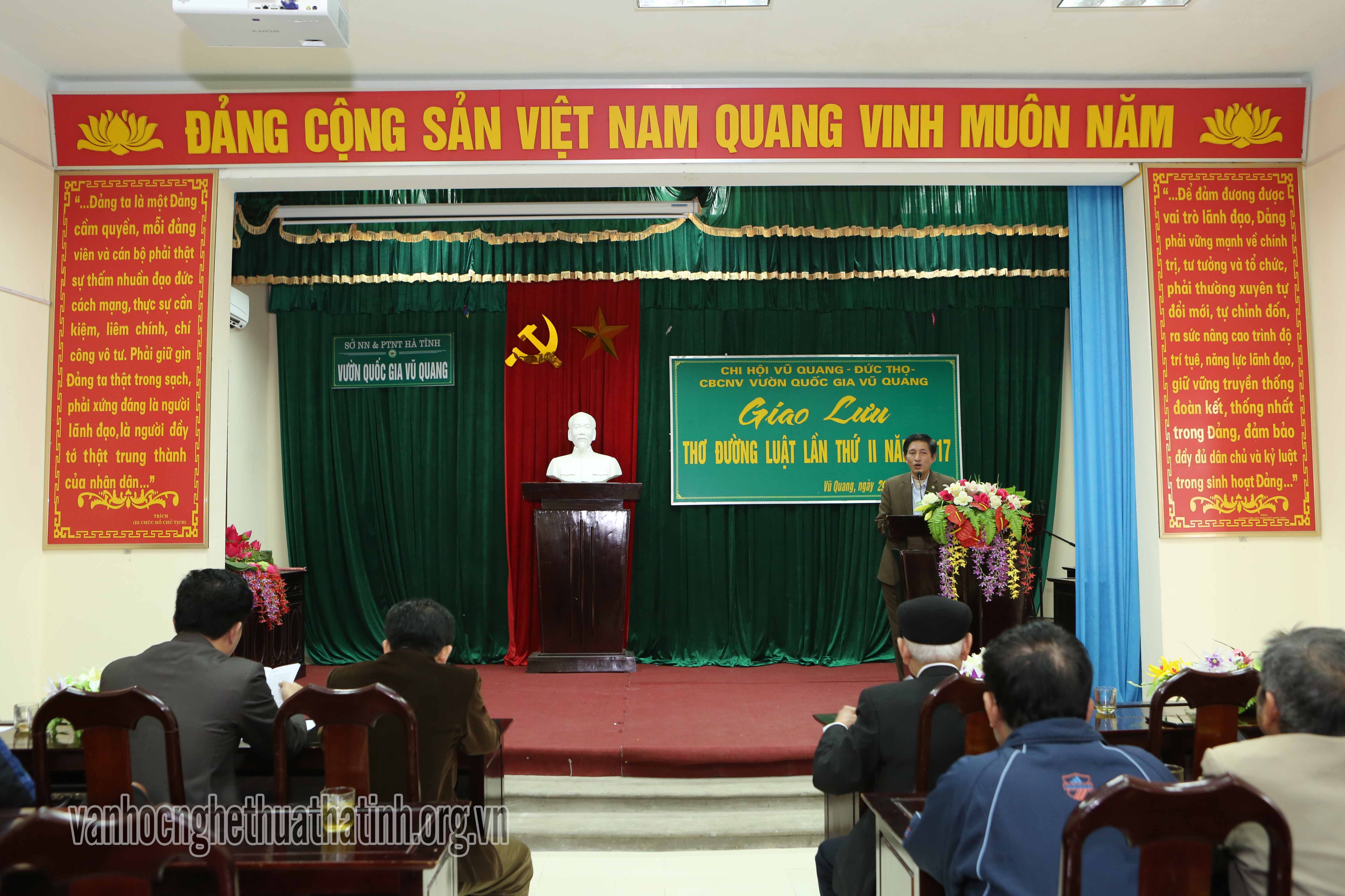 Đây là lần thứ hai, Câu lạc bộ thơ Đường luật Vũ Quang tổ chức được hoạt động nghề nghiệp trong năm 2017. Tham dự buổi giao lưu thơ có đại diện lãnh đạo: Hội liên hiệp VHNT Hà Tĩnh, huyện Vũ Quang, Ban Giám đốc VQG Vũ Quang, Câu lạc bộ thơ Đường luật Hà Tĩnh và đông đảo các hội viên của hai câu lạc bộ.