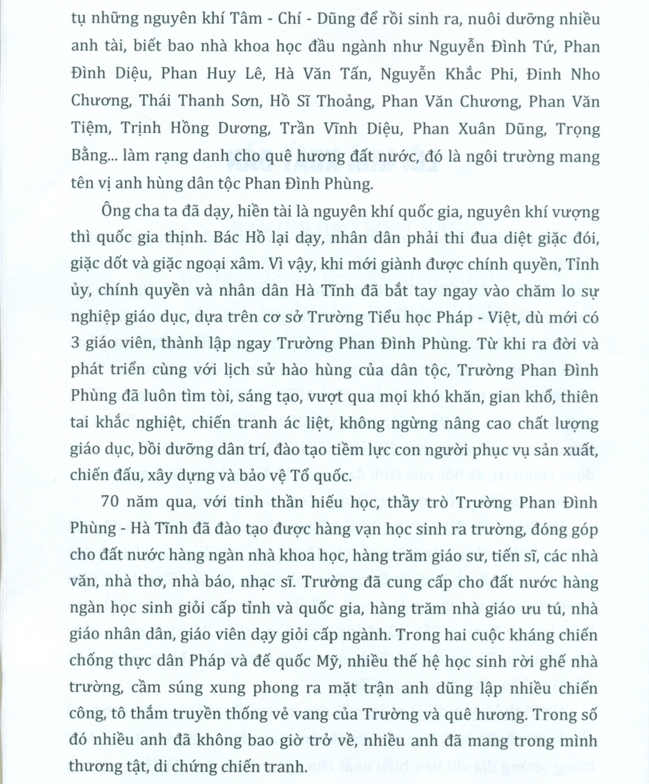 (vanhocnghethuathatinh.org.vn) Nhân dịp kỷ niệm 70 năm thành lập Trường THPT Phan Đình Phùng Hà Tĩnh. Hội liên hiệp VHNT Hà Tĩnh xin giới thiệu cuốn sách "70 năm Trường Phan Đình Phùng Hà Tĩnh" do Nhà xuất bản Chính trị Quốc gia phát hành