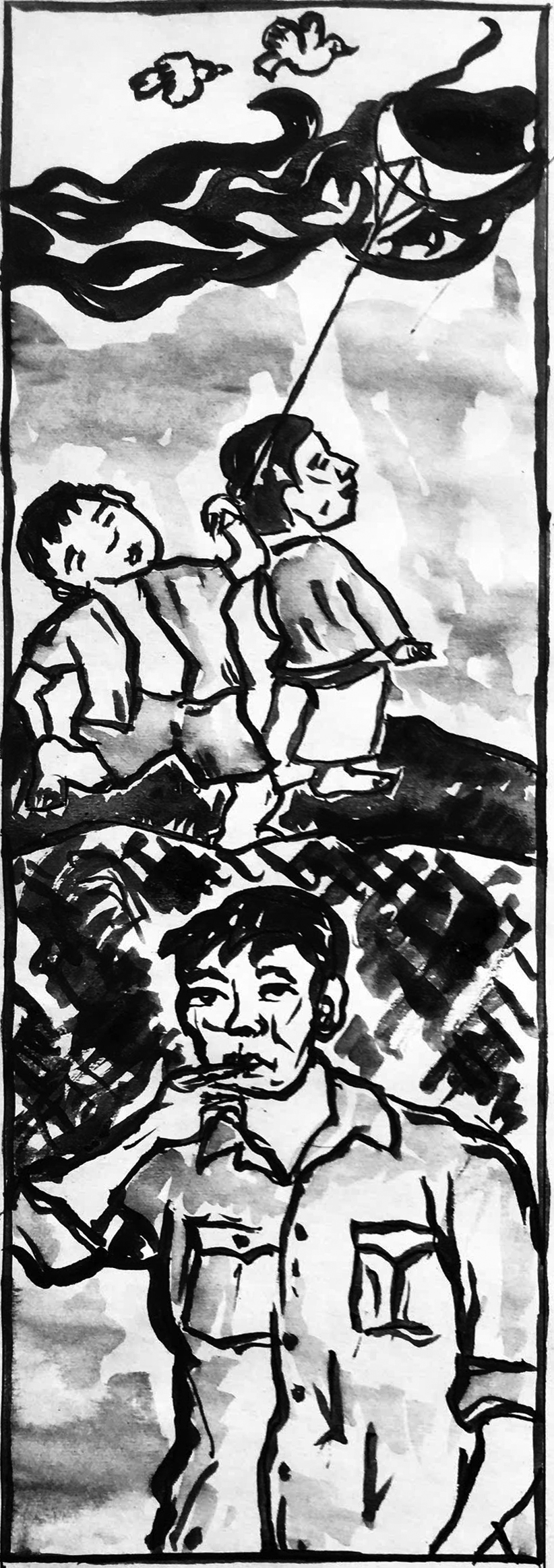 Thế là chiều nào thằng Toàn cũng được ra đồng làng thả diều với thằng Tũn. Khánh làm thêm cho hai đứa một con diều hình chim phượng nữa làm chúng nó vui như Tết. Mẹ Khánh hỏi thế con có gặp cái Huệ không, nó là mẹ thằng Tũn đó. Khánh nói không, con không gặp cô ấy, rồi lảng sang chuyện khác, mẹ đành im lặng thở dài, ừ thôi tụi bây không có duyên phận thì thôi, mẹ hỏi thì phỏng có ích gì.