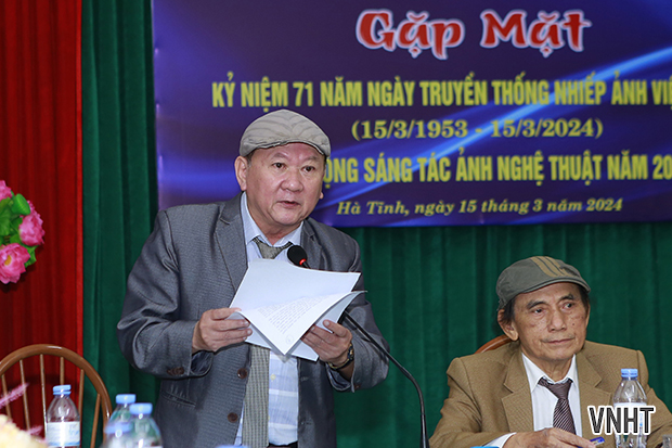 Mở đầu lễ kỷ niệm, Nghệ sĩ nhiếp ảnh Trần Hướng - Phó Chủ tịch, Trưởng Ban Nhiếp ảnh Hội liên hiệp VHNT Hà Tĩnh ôn lại lịch sử nhiếp ảnh Việt Nam đồng thời báo cáo kết quả hoạt động của chuyên ngành và phong trào sáng tạo nghệ thuật của đội ngũ nghệ sỹ nhiếp ảnh Hà Tĩnh trong thời gian qua.
