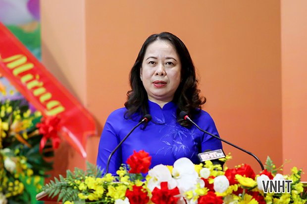 Đồng chí Võ Thị Ánh Xuân - Ủy viên Trung ương Đảng, Phó Chủ tịch nước, Phó Chủ tịch thứ nhất Hội đồng Thi đua - Khen thưởng Trung ương phát biểu tại đại hội