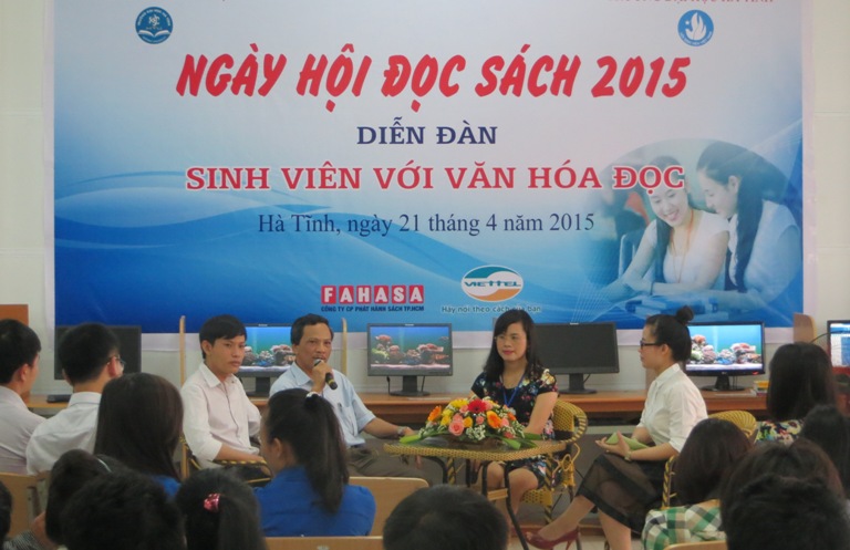 Sáng ngày 21/4 Hội sinh viên và Thư viên nhà trường Đại học Hà Tĩnh phối hợp tổ chức đàn diễn với chủ đề “Sinh viên với văn hóa đọc". Đông đảo sinh viên và bạn đọc tham dự được nghe những chia sẻ của các nhà văn, các thầy cô giáo, những người làm công tác thư viện trong trường học về những kỷ niệm trong việc đọc sách, viết sách, biên tập sách, vai trò của sách trong đời sống cũng như những nhìn nhận, về thực trạng văn hóa đọc hiện nay trong giới trẻ; và các kỹ năng nhằm nâng cao văn hóa đọc trong cộng đồng nói chung, trong giới trẻ, học sinh, sinh viên nói riêng…