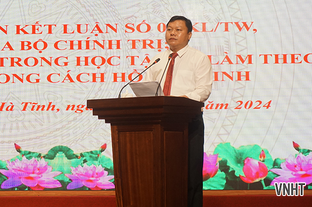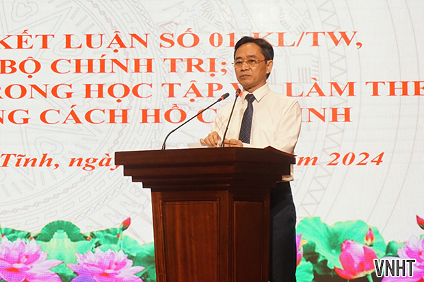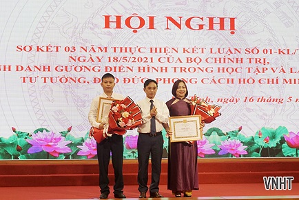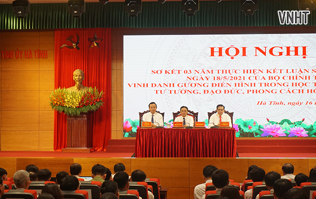 Sáng 16/5, Tỉnh ủy Hà Tĩnh tổ chức hội nghị sơ kết 3 năm thực hiện Kết luận số 01-KL/TW, ngày 18/5/2021 của Bộ Chính trị về tiếp tục thực hiện Chỉ thị số 05-CT/TW ngày 15/5/2016 của Bộ Chính trị khóa XII "Về đẩy mạnh học tập và làm theo tư tưởng, đạo đức, phong cách Hồ Chí Minh"; vinh danh gương điển hình tiêu biểu.