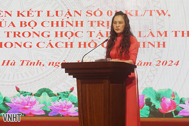 Đồng chí Nguyễn Thanh Nga, Huyện ủy viên, Trưởng phòng Giáo dục và Đào tạo huyện Thạch Hà với tham luận Chi bộ Phòng Giáo dục và Đào tạo huyện Thạch Hà: Gương mẫu, đi đầu trong các hoạt động, có nhiều cách làm hay, sáng tạo trong Học tập và làm theo tư tưởng, đạo đức, phong cách Hồ Chí Minh gắn với việc đổi mới căn bản toàn diện, hiệu quả các hoạt động giáo dục và đào tạo