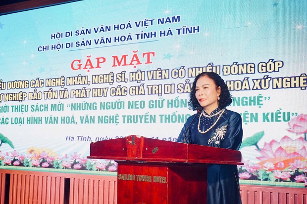 Hà Tĩnh – vùng đất “địa linh nhân kiệt” với kho tàng di sản phong phú từ di tích lịch sử, danh lam thắng cảnh đến dân ca, lễ hội và di sản tư liệu – được kiến tạo và trao truyền qua biết bao thế hệ. Buổi gặp mặt, tri ân và biểu dương các hội viên, nghệ sĩ, nghệ nhân – những người đã bền bỉ gìn giữ, phục hồi và lan tỏa các giá trị di sản văn hóa Hà Tĩnh suốt nhiều năm qua. Họ chính là những “người neo giữ hồn di sản” âm thầm nhưng kiên định, góp phần làm nên sắc màu đặc trưng của văn hóa vùng Nghệ Tĩnh giữa dòng chảy hiện đại. Cũng tại buổi gặp mặt, Chi hội đã giới thiệu hai ấn phẩm mới của tác giả Phan Thư Hiền – nguyên Phó Giám đốc Sở Văn hóa, Thể thao và Du lịch, Chi hội trưởng Chi hội Văn nghệ dân gian Việt Nam tại Hà Tĩnh, Phó Chủ tịch Thường trực Chi hội Di sản Văn hóa Hà Tĩnh. Các cuốn sách bao gồm: “Những người neo giữ hồn quê Xứ Nghệ” và bộ sách “Các loại hình văn hóa, văn nghệ truyền thống với Truyện Kiều”.