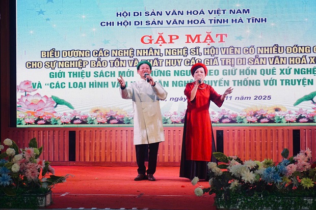 Chiều 23/11/2025, nhân kỷ niệm 20 năm Ngày Di sản văn hóa Việt Nam (23/11/2005 – 23/11/2025), Chi hội Di sản văn hóa Hà Tĩnh đã tổ chức buổi gặp mặt trang trọng nhằm tri ân các nghệ sĩ, nghệ nhân, hội viên đã có nhiều đóng góp thiết thực vào sự nghiệp bảo tồn và phát huy các giá trị di sản văn hóa Xứ Nghệ. Tham dự chương trình có các đồng chí nguyên lãnh đạo tỉnh, lãnh đạo Sở Văn hóa – Thể thao & Du lịch cùng đông đảo nhà nghiên cứu, nghệ sĩ, nghệ nhân và hội viên hội Di sản văn hóa Hà Tĩnh.