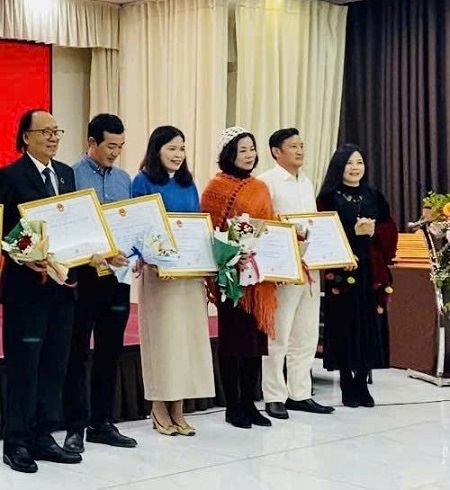 Tác giả Nguyễn Doãn Việt (thứ 2), tác giả Trần Ngọc Diệp (thứ 4 từ trái sang) Tại lễ trao giải.