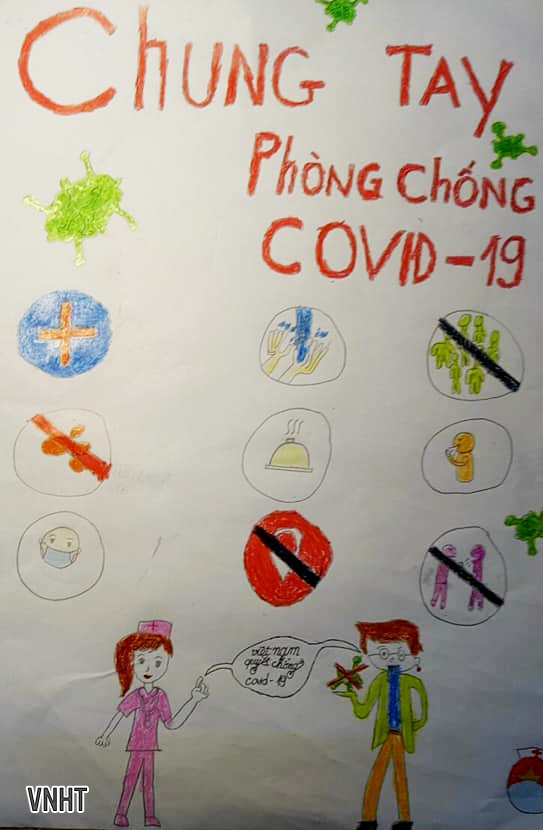 Cuộc chiến chống dịch COVID-19 của Việt Nam đang ghi nhận ngày càng nhiều hành động đẹp, việc làm ý nghĩa khi cả hệ thống chính trị đã và đang vào cuộc với một quyết tâm lớn, một sự đồng tâm hiệp lực mạnh mẽ để chung tay phòng chống dịch. Các em học sinh trường Tiểu học Tân Giang -TP Hà Tĩnh đã góp một phần nhỏ của mình vào việc phòng chống và đẩy lùi đại dịch corona bằng hoạt động vẽ tranh rất bổ ích trong thời gian nghỉ chống dịch.