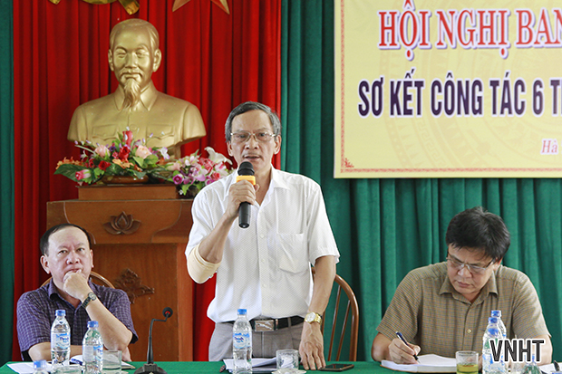 Báo cáo do Phó Chủ tịch Hội Trần Đình Hướng trình bày đã điểm lại những hoạt động đầu năm của Hội như tổ chức Hội nghị tổng kết công tác VHNT năm 2019, thống nhất phương hướng nhiệm vụ cho năm 2020, kịp thời tham mưu cho lãnh đạo tỉnh tổ chức gặp mặt cán bộ, văn nghệ sĩ tiêu biểu; chúc thọ đầu xuân các hội viên cao tuổi, chúc mừng các cán bộ, hội viên đạt thành tích cao và làm lễ trao thẻ cho 7 hội viên mới. Chi bộ Văn phòng Hội tổ chức tổng kết năm, nghiêm túc tiến hành đánh giá, phân loại tập thể, cá nhân, làm tốt công tác Thi đua khen thưởng. Năm 2019, Hội vinh dự được UBND tỉnh tặng Bằng khen. Chi bộ Hội liên hiệp VHNT Hà Tĩnh đã tổ chức thành công Đại hội nhiệm kỳ 2020 -2025. Đảng đoàn, Ban thường vụ cũng đã tổ chức Hội nghị Ban chấp hành khóa IX mở rộng, tiến hành một số nội dung quan trọng chuẩn bị cho nội dung đại hội Hội Liên hiệp Văn học nghệ thuật lần thứ X và kỉ niệm 50 năm thành lập Hội. Ban thường vụ Hội cũng đã có cuộc làm việc với Ban Tuyên giáo Tỉnh ủy, Ban Dân vận Tỉnh ủy, Ban Tổ chức Tỉnh ủy để thẩm định nội dung trình Thường trực Tỉnh ủy về việc tổ chức Đại hội lần thứ X gắn với lễ kỉ niệm 50 năm thành lập Hội. Thời gian qua, Hội cũng đã tạo điều kiện và chỉ đạo để các Chi hội VHNT Nghi Xuân, Hương Khê và Chi hội Nghệ sĩ múa Việt Nam tỉnh Hà Tĩnh tổ chức Đại hội (nhiệm kỳ 2020 – 2025). Tạp chí Hồng Lĩnh, trang Web "Văn nghệ Hà Tĩnh" Diễn đàn VHNT, tập san của các Chi hội VHNT hoạt động có hiệu quả, thông tin khá kịp thời các hoạt động lớn của Hội, giới thiệu tác phẩm của hội viên, CTV. Hội đã xét hỗ trợ trực tiếp đợt 1 năm 2020 cho nhiều công trình tập thể và tác phẩm của cá nhân đúng theo theo đúng Quy chế hỗ trợ sáng tạo. Một số đầu sách của hội viên được xuất bản, hàng trăm tác phẩm thuộc nhiều chuyên ngành được giới thiệu trên các phương tiện thông tin đại chúng. Cuối tháng 6, Hội đã mở trai sáng tác tập trung cho 24 hội viên tại Thị xã Kỳ Anh.