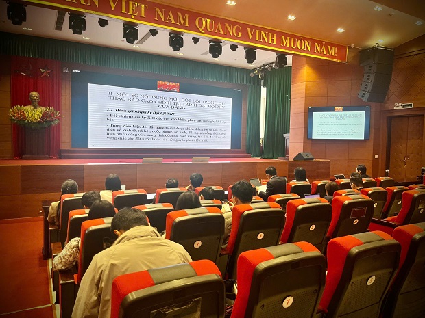 Tại hội nghị tập huấn, các đại biểu đã được GS, TS Tạ Ngọc Tấn – nguyên Ủy viên Trung ương Đảng, Phó Chủ tịch Thường trực Hội đồng Lý luận Trung ương, Tổ phó Thường trực Tổ Biên tập văn kiện Đại hội XIV và đồng chí Lê Quốc Minh – Ủy viên Trung ương Đảng, Chủ tịch Hội Nhà báo Việt Nam, Tổng Biên tập Báo Nhân Dân trao đổi, làm rõ những điểm mới trong công tác xây dựng văn kiện Đại hội XIV của Đảng; những nội dung cốt lõi, quan trọng trong dự thảo các văn kiện trình Đại hội XIV; đồng thời nhấn mạnh yêu cầu đổi mới, sáng tạo trong công tác tuyên truyền về Đại hội XIV của Đảng.