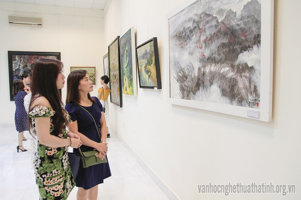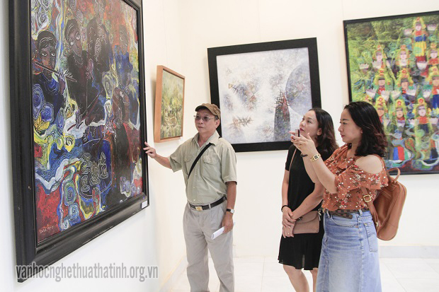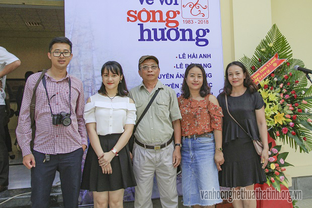 Đoàn Tạp chí Hồng Lĩnh chụp ảnh kỉ niệm tại phòng triển lãm tranh “Về với Sông Hương”.