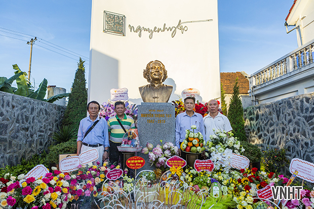 Đại diện Hội Liên hiệp VHNT Hà Tĩnh cùng bạn bè của nhà thơ, nhạc sĩ đến dâng hương tại Khu tưởng niệm