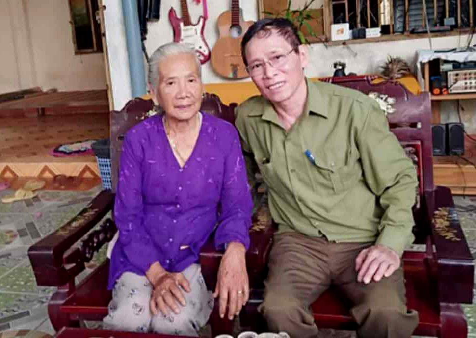 Má Hai Dỡn, 84 tuổi một trong số cô bác chôn cất 62 liệt sĩ hy sinh ngày 11/5/1972 và tác giả.