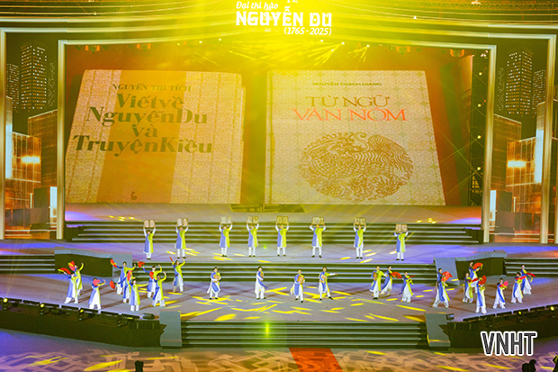 Chương trình nghệ thuật mang chủ đề “Đại thi hào Nguyễn Du - chữ tâm sáng mãi”, gồm bốn chương: "Thuở ấu thơ", "Mười năm gió bụi", "Viết Kiều đất nước hóa thành văn" và "Đồng vọng với thời gian". Chương trình được dàn dựng công phu, giàu chiều sâu tư tưởng và cảm xúc, thể hiện sự trân trọng, tôn vinh xứng đáng đối với một danh nhân văn hóa kiệt xuất của dân tộc. Chương trình đã khéo léo kết hợp giữa ngôn ngữ nghệ thuật truyền thống và đương đại, tạo nên một không gian nghệ thuật vừa trang nghiêm, sâu lắng, vừa sinh động, giàu sức lan tỏa.