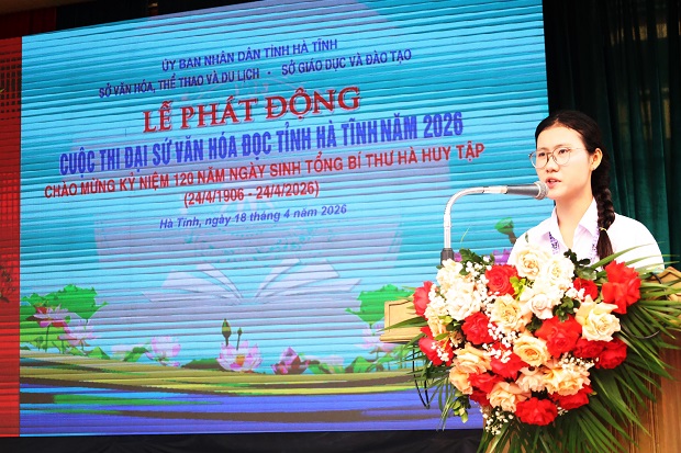 Phát biểu phát động Ngày Sách và Văn hóa đọc Việt Nam lần thứ V năm 2026 tại Hà Tĩnh, đồng chí Nguyễn Công Thành - Phó Giám đốc Sở Văn hóa, Thể thao và Du lịch nhấn mạnh: “Mỗi trang sách là một cánh cửa mở ra thế giới mới, là nền tảng cho sự hiểu biết, trí tưởng tượng; đồng thời là nơi để mỗi chúng ta tìm thấy chính mình, đối thoại với những tư tưởng lớn và học cách sống một cuộc đời sâu sắc. Văn hóa đọc không chỉ là hành vi cá nhân mà còn là thước đo dân trí, là nền tảng vững chắc cho sự phát triển bền vững của một xã hội văn minh. Ngày Sách và Văn hóa đọc Việt Nam chính là dịp tôn vinh những giá trị cao đẹp của sách, qua đó khơi dậy và lan tỏa tinh thần đọc sách đến mọi tầng lớp nhân dân, đặc biệt là thế hệ trẻ”.