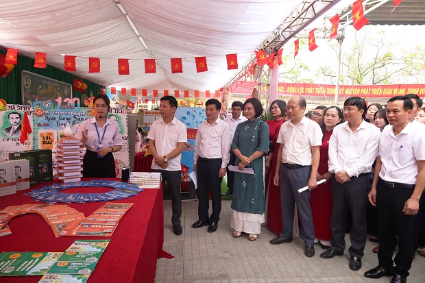 Các đồng chí lãnh đạo, các thầy cô giáo cùng các em học sinh cùng tham quan các gian hàng trưng bày, giới thiệu sách của các đơn vị.