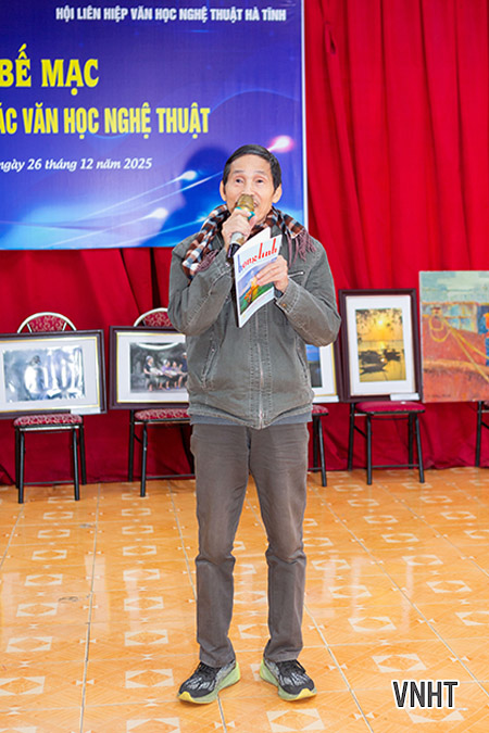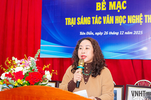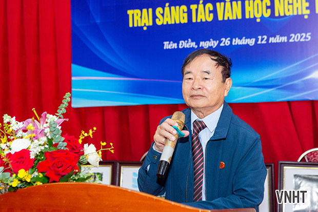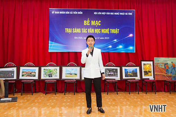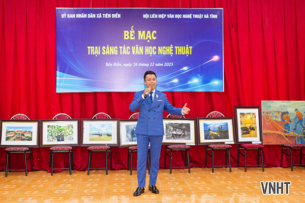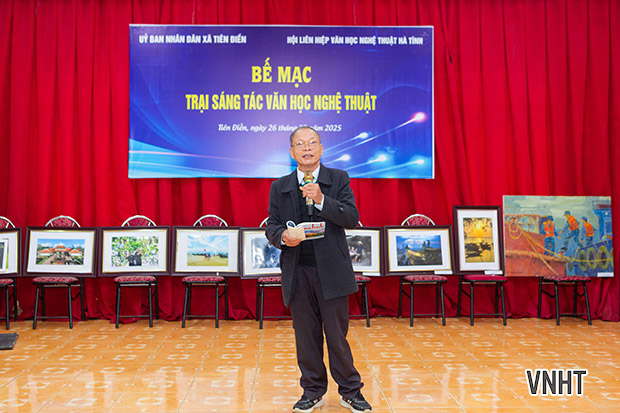 Sáng nay 26/12/2025, Hội Liên hiệp VHNT Hà Tĩnh tổ chức bế mạc Trại sáng tác VHNT khu vực phía Bắc Hà Tĩnh. Trại sáng tác được tổ chức từ ngày 3/12 đến ngày 25/12/2025 tại xã Tiên Điền, tỉnh Hà Tĩnh với sự tham gia của các tác giả thuộc các chuyên ngành thơ, văn xuôi, mỹ thuật, nhiếp ảnh, văn nghệ dân gian, sân khấu biểu diễn.