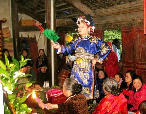 Một buổi Hầu đồng ở Đền Hoàng Mười Nghệ An. Ảnh: Tư liệu