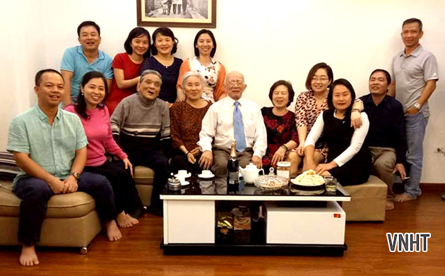Nhà giáo Trần Văn Khoan ( mặc áo len sọc, thứ ba bên trái sang) với gia đình