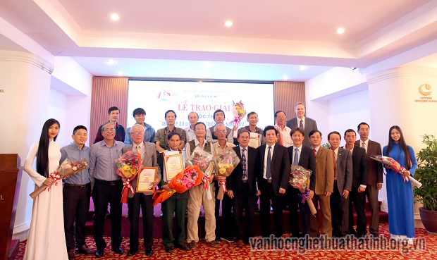 Lãnh đạo sở Du lịch Thừa Thiên - Huế chụp ảnh chung với các tác giả đạt giải.