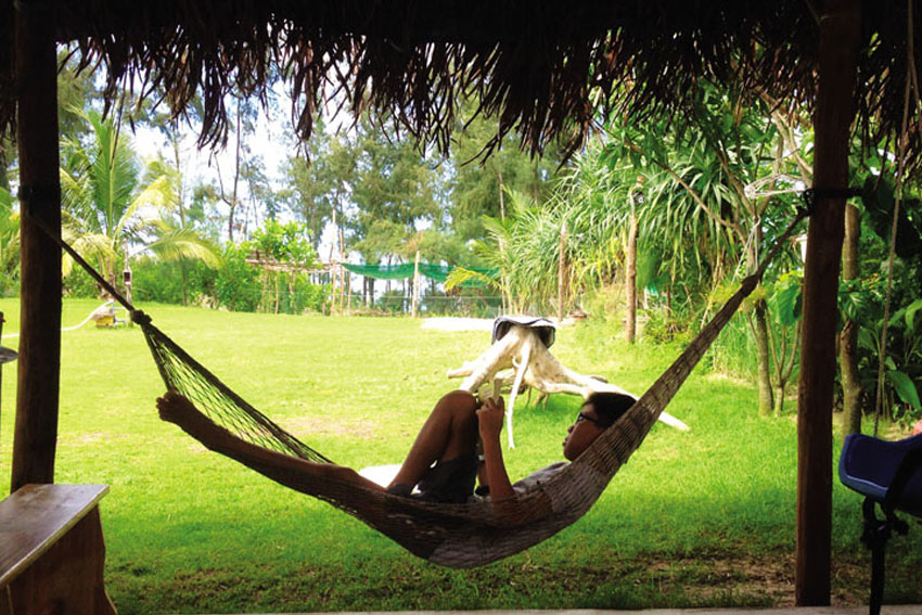 Khu vườn nhà tôi trồng rất nhiều cây ăn quả, hoa kiểng và các loại rau. Vì vậy vào mùa nóng, đây là nơi lý tưởng để nghỉ ngơi, đánh một giấc ngon lành đến chạng vạng. Nơi đây còn có tiếng chim hót, tiếng gió thồi và những âm thanh hỗn tạp từ cây cỏ đan xem tạo nên những bản nhạc thú vị. Trước khi chìm vào giấc ngủ, nội thường kể truyện cổ tích, truyền thuyết và những câu chuyện người thật việc thật cho tôi nghe. Qua đó, nội rút ra những bài học, những chân lý để tôi thấm nhuần. Điều nào hay, tích cực, nội bảo tôi học hỏi, noi theo. Điều nào xấu xa, tiêu cực, nội khuyên lấy đó làm gương, đừng vướng vào mà hủy hoại cuộc đời. Những hôm nào tôi khó ngủ, nội hát ru, hò ơ cho tôi nghe. Những bài đồng dao, thiếu nhi thời tuổi lên năm đến giờ tôi vẫn còn nhớ rất rõ. Tuy tuổi cao nhưng giọng nội còn rất trong trẻo, ngọt lịm như mía lùi. Lắm lúc nội còn chuyển sang ca vọng cổ, hát tân nhạc để thay đổi gu thẩm mỹ non nớt của tôi. Và tất nhiên, sau những lời ca ngọt ngào ấy, tôi rơi vào cõi chiêm bao lúc nào không hay.