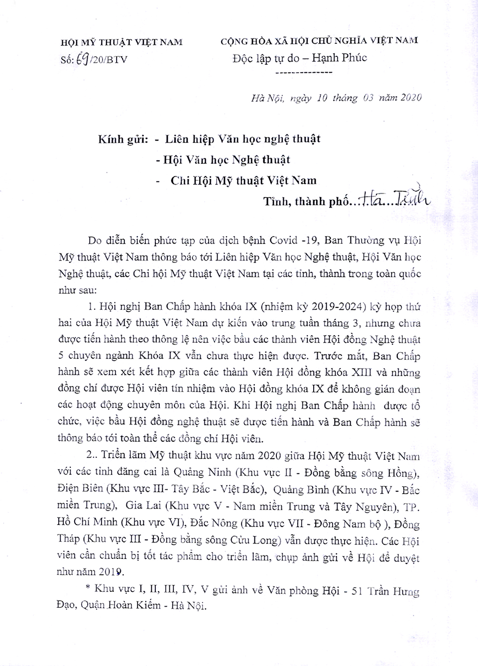 Thông báo về Triển lãm Mỹ thuật Khu vực IV Bắc miền Trung năm 2020