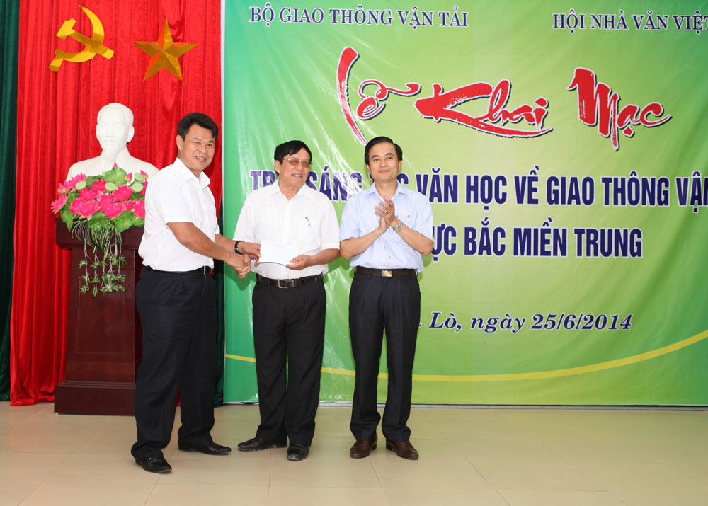 Nhà văn Đào Thắng ( giữa) tại Lễ khai mạc trại sáng tác văn học về giao thông vận tải