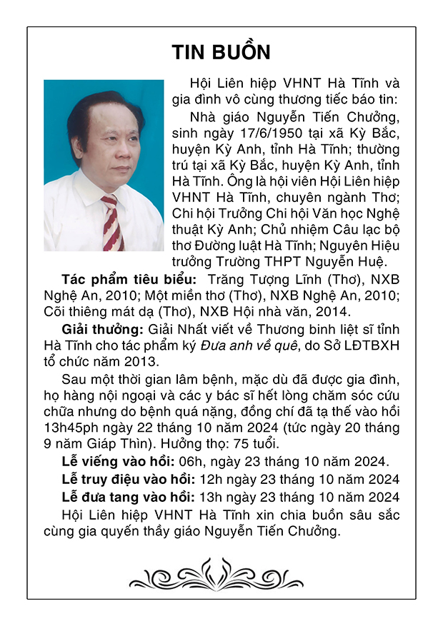 CHÀO MỪNG BẠN ĐẾN VỚI TRANG THÔNG TIN HỘI LIÊN HIỆP VĂN HỌC NGHỆ THUẬT HÀ TĨNH