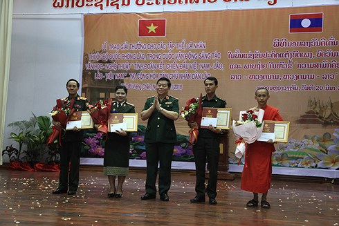 Sáng 20-3, tại Thủ đô Viên Chăn (Lào) đã diễn ra lễ trao giải thưởng cho các tập thể, cá nhân trong và ngoài QĐND Lào đã đoạt giải cuộc vận động sáng tác văn học, nghệ thuật về “Tình đoàn kết chiến đấu ba nước Việt Nam-Lào-Campuchia”.