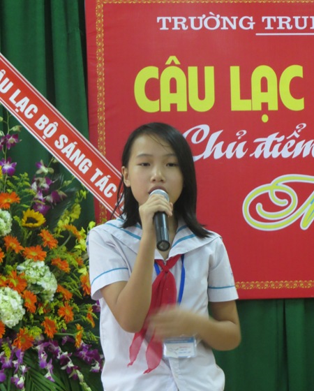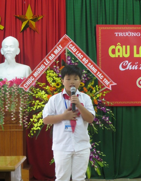 Nhà văn Phan Trung Hiếu, Chủ tịch Hội liên hiệp VHNT, Trưởng Ban văn học thiếu nhi HT đã biểu dương sự cố gắng của lãnh đạo Nhà trường cũng như hy vọng Câu lạc bộ sáng tác trẻ sẽ là nơi để phát hiện, ươm mầm những năng khiếu văn chương của tuổi học đường, tích cực tham gia các cuộc thi viết vẽ tuổi học trò trong tỉnh cũng như cuộc thi Cây bút tuổi hồng do Hội nhà văn Việt Nam phối hợp với Hội đồng đội TW, Báo Thiếu niên tiền phong phát động.