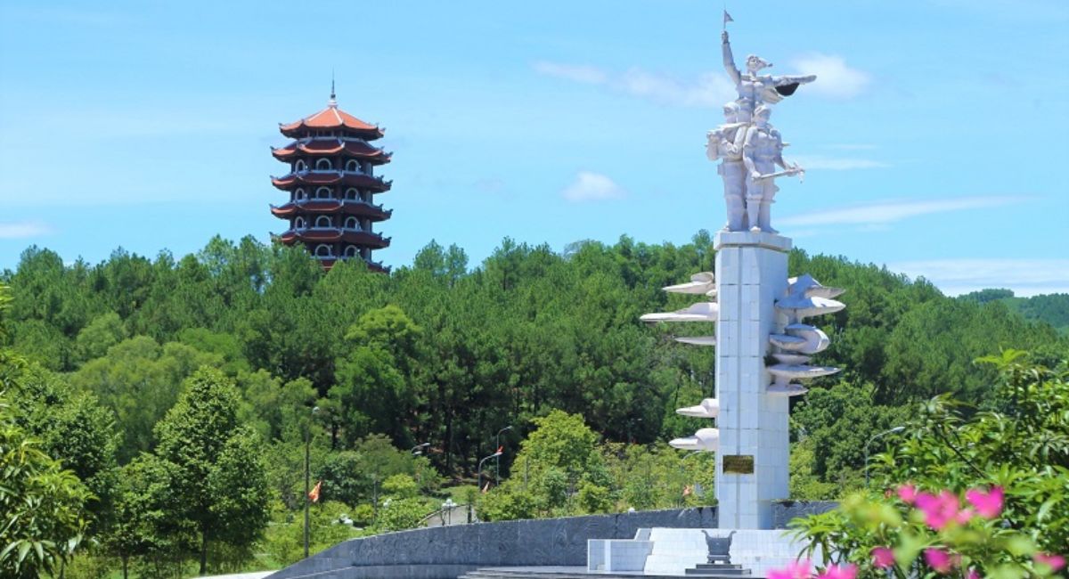 Chúng tôi bước thật nhẹ trên khu di tích và cùng cảm nhận thấy chiều dần buông xuống. Khí núi từ trùng điệp của dãy Giăng Màn mang hơi se lạnh toả ra ôm choàng Ngã Ba Đồng Lộc. Bên hoàng hôn, tượng đài từ màu ngọc thạch đã chuyển dần sang xám màu đá núi.