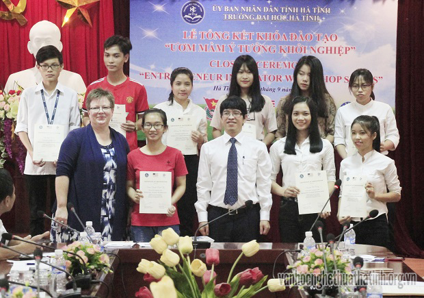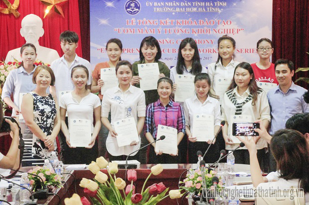 Chiều ngày 21/9/2017, tại cơ sở 1 Trường đại học Hà Tĩnh ( đường 26/3, phường Đại Nài, thành phố Hà Tĩnh) đã diễn ra lễ tổng kết và trao chứng nhận cho các học viên hoàn thành khóa đào tạo “Ươm mầm ý tưởng khởi nghiệp”. Chương trình được triển khai trong tháng 7 và tháng 8 năm 2016 nhằm giúp học sinh, sinh viên hình thành ý tưởng khởi nghiệp, đồng thời cung cấp một số kiến thức cần thiết để trở thành công dân toàn cầu.