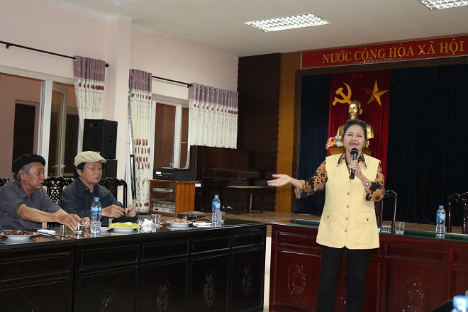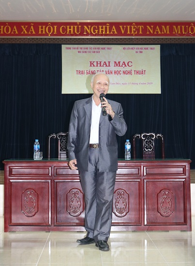 Ông Đỗ Quang Trung thay mặt lãnh đạo Nhà sáng tác Tam Đảo chào mừng anh em Hội viên Hội VHNT Hà Tĩnh đến từ quê hương của Đại thi hào Nguyễn Du “ Trong điều kiện có thể, chúng tôi cố gắng tạo mọi điều kiện về ăn, ở, sinh hoạt để anh em văn nghệ sĩ có đủ sức khỏe để sáng tạo nghệ thuật”.