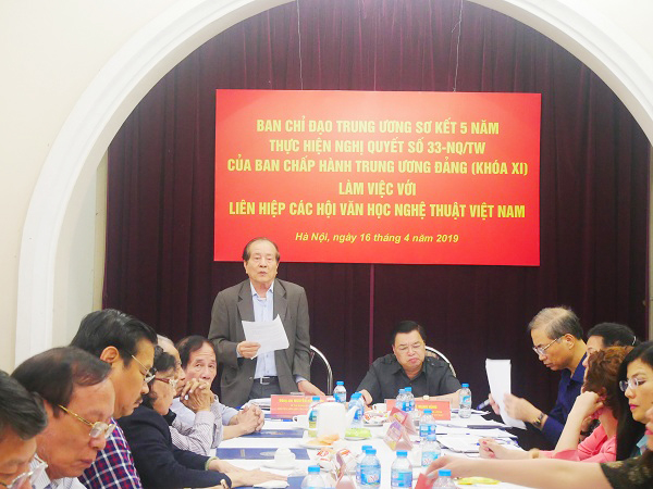 Sau Nghị quyết 33-NQ/TW khóa XI, Liên hiệp các Hội Văn học Nghệ thuật Việt Nam đã thành lập Hội đồng Lý luận phê bình văn học nghệ thuật tổ chức các hội thảo thường xuyên đi sâu vào phân tích, phê phán những quan điểm sai trái trong văn học nghệ thuật như phủ nhận, xuyên tạc lịch sử, hạ bệ thần tượng, giải thiêng các giá trị truyền thống văn hóa dân tộc, tuyệt đối hóa hình thức, xóa nhòa ranh giới giữa chiến tranh chính nghĩa và phi nghĩa.